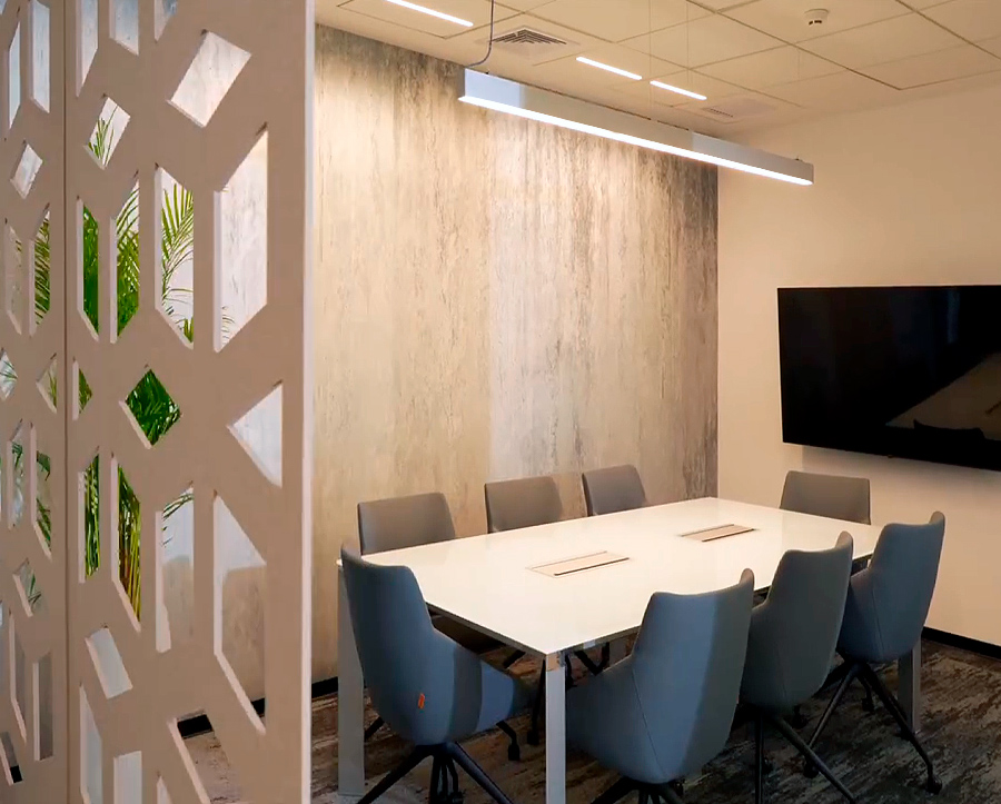 La iluminación fue cuidadosamente planificada, utilizando artefactos lineales LED, colgantes, y downlights LED empotrados y suspendidos, garantizando una iluminación eficiente y de alta calidad adaptada al espacio.fo