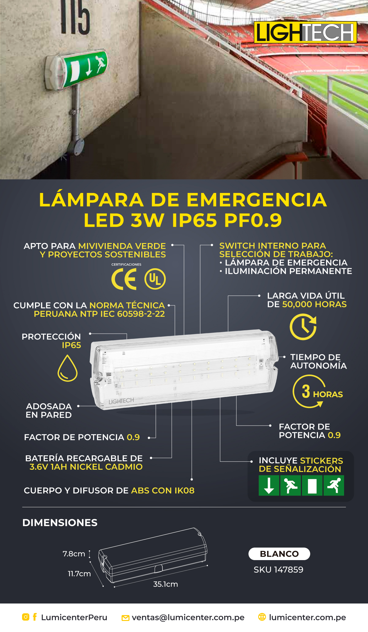 Lámpara de emergencia LED 3W IP65 PF0.90 Blanco – Luz fría 147859