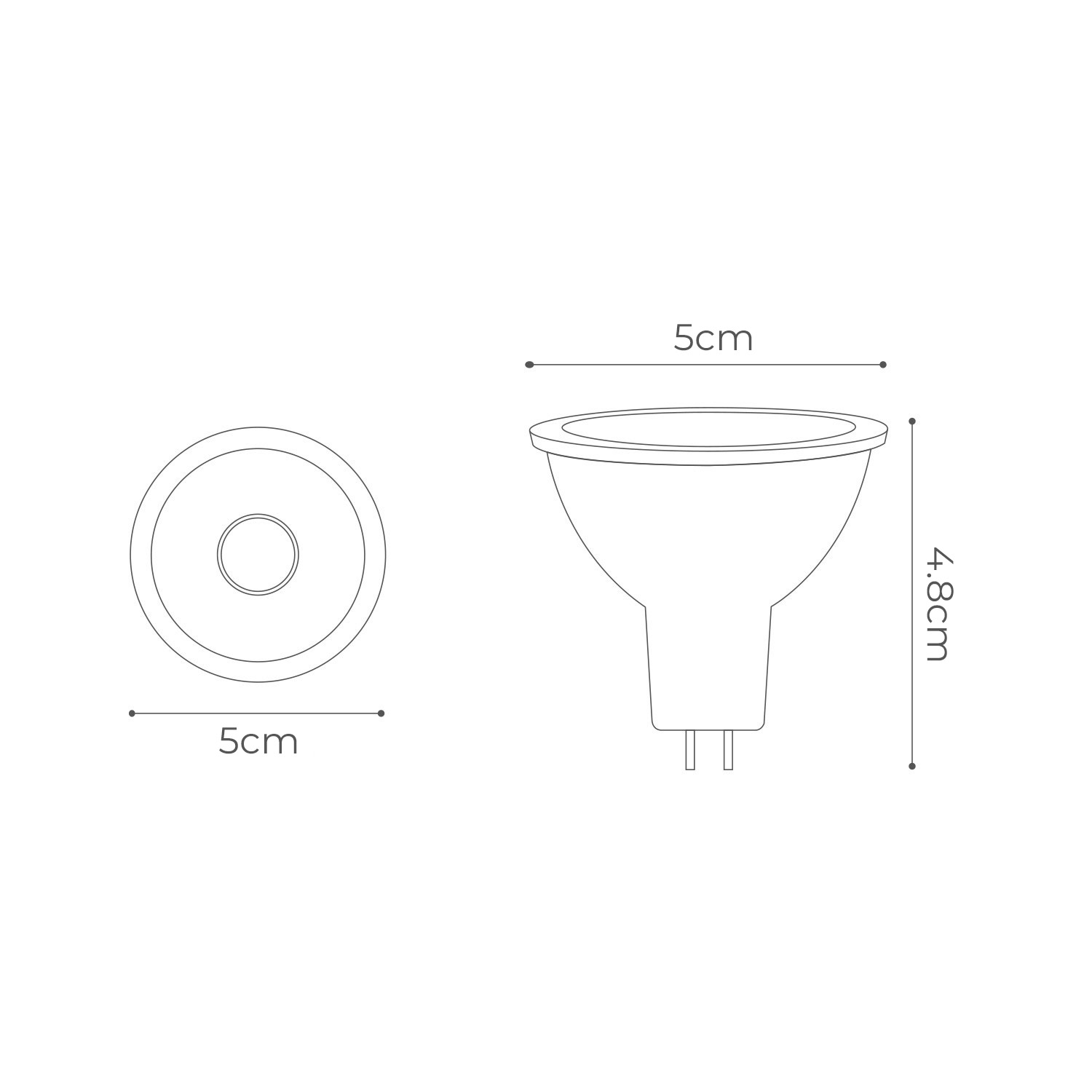 Foco LED GU5.3 6W equivalente a una lámpara halógena de 50W. Sin ningún tipo de ajuste y no necesita el uso de transformador, así obtendrá un ahorro de hasta 85% en su consumo de energía y 30,000 horas de vida útil. Larga duración y mayor resistencia a los golpes.