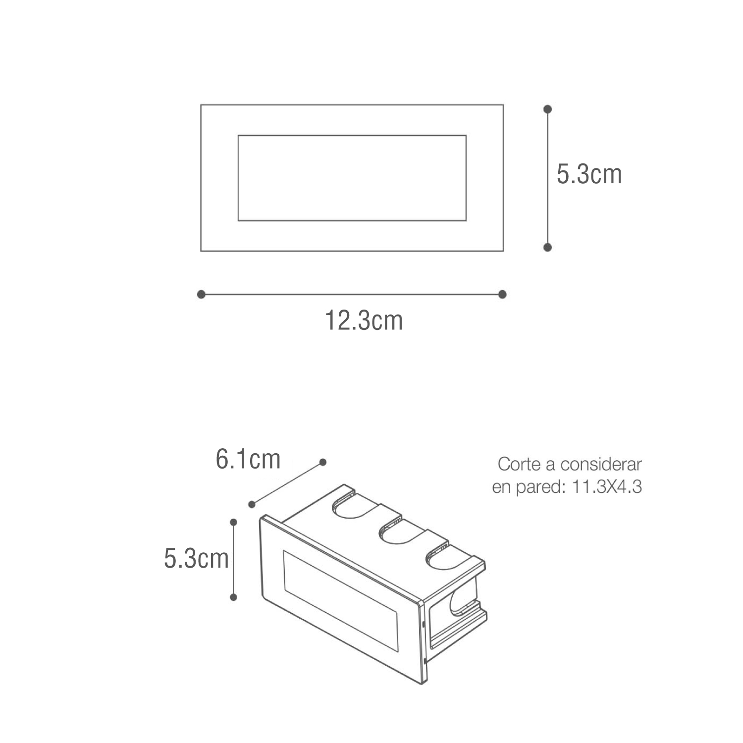 Luz Guía LED 2W para empotrar en pared. Uso para exteriores. Características: Larga duración, alta eficiencia en iluminación, encendido instantáneo, ahorra energía, de fácil instalación.