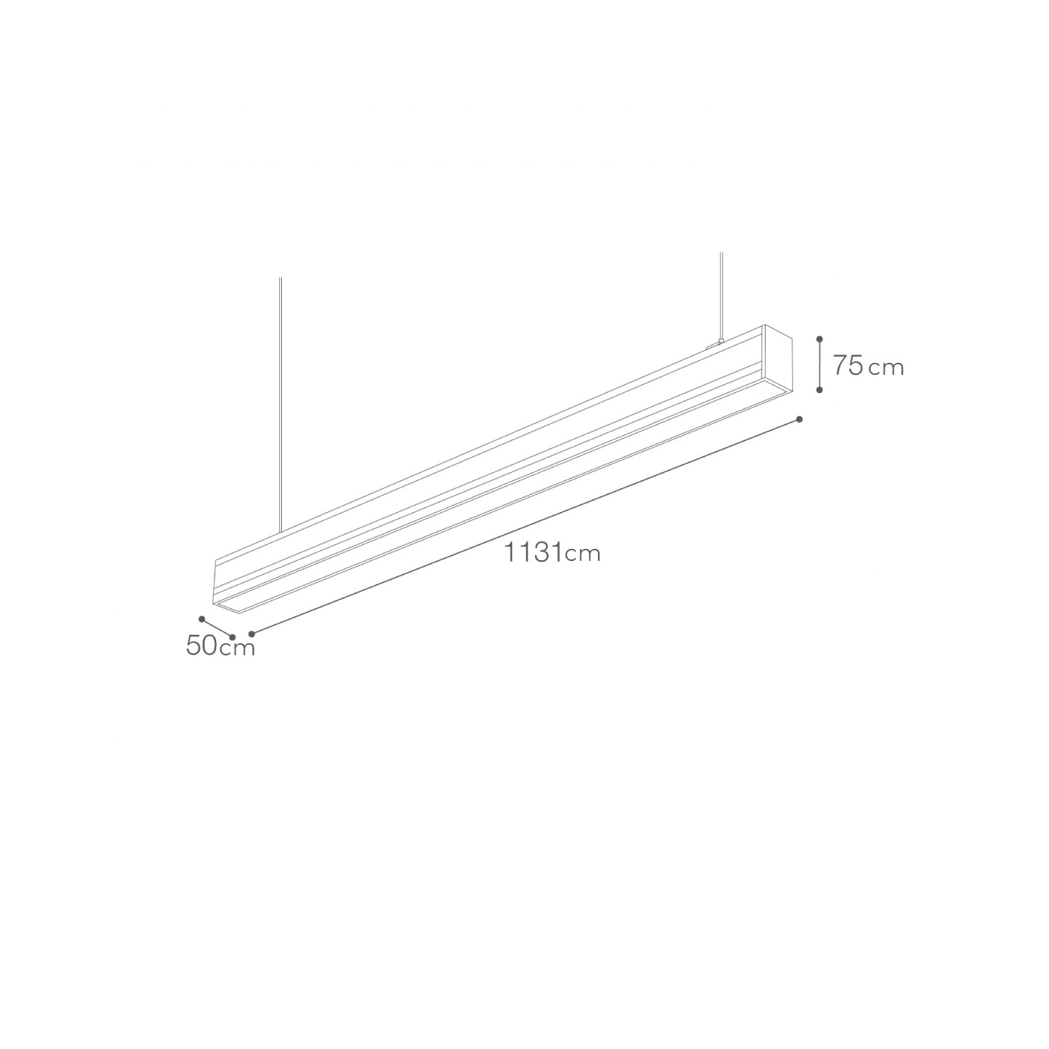 Artefacto lineal block LED 48W para suspender. Uso para interiores. Luminaria con doble difusor y luz bidireccional. Difusor superior: tira LED 16W y difusor inferior 32W. Diseño versátil que permite crear diversas formas de iluminación uniendo hasta cuatro artefactos con conectores angulares.