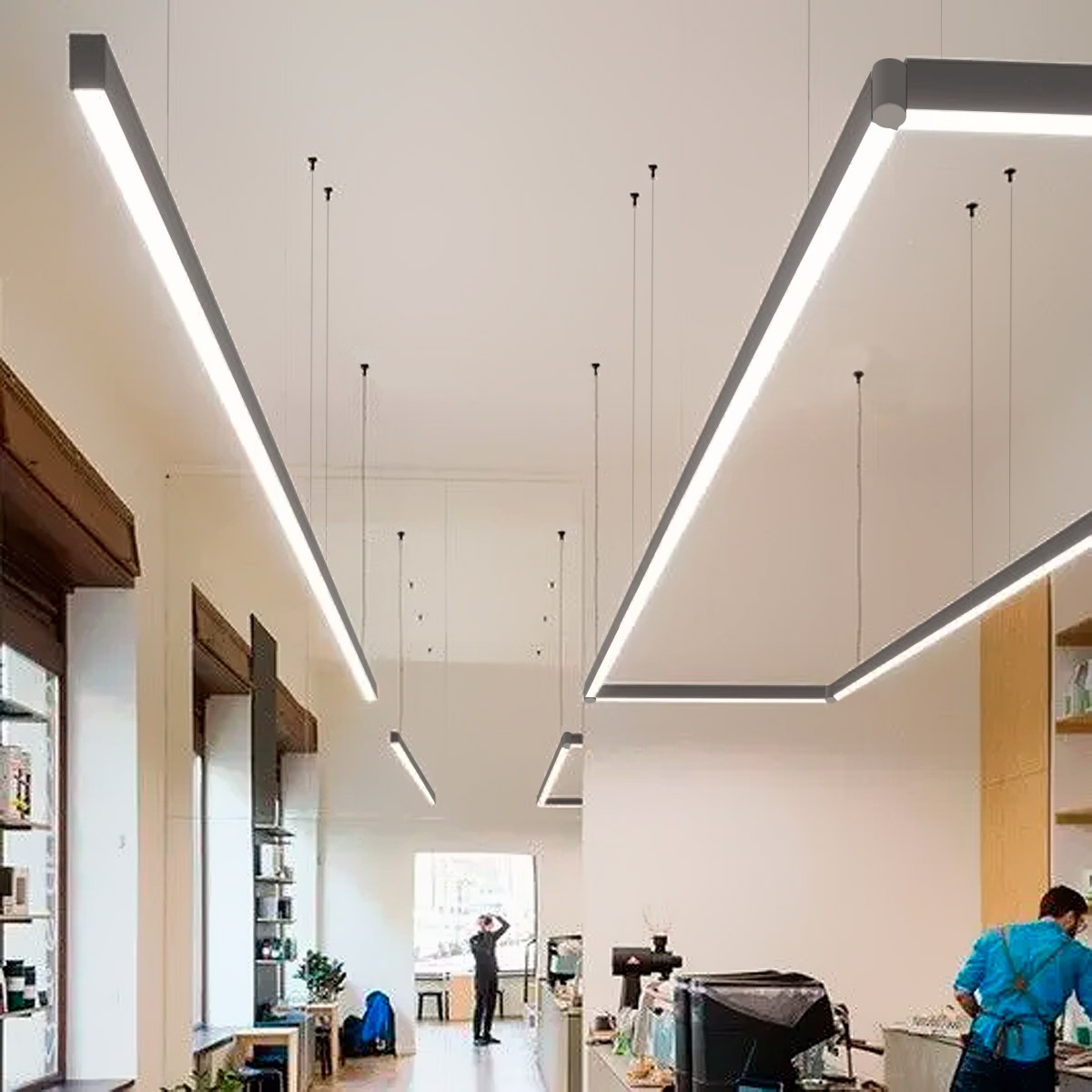 Luminaria suspendida LED 32W. Uso para interiores. Luminaria con tres temperaturas en un sólo producto. Temperaturas: 3000K-4000K-6000K (Luz amarilla – Luz día- Luz Blanca). Switch integrado. Diseño versátil que permite crear diversas formas de iluminación uniendo hasta cuatro artefactos con conectores angulares.