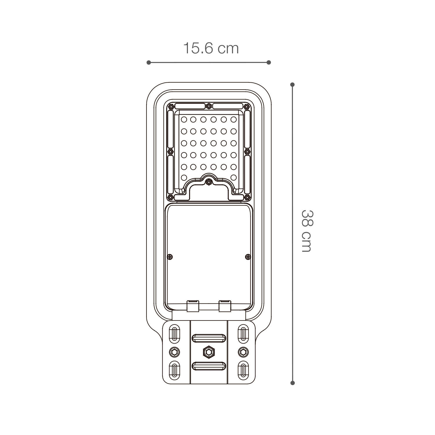 Luminaria urbana LED 60W para adosar. Se utiliza como sustitución de luminarias tradicionales de halogenuro, vapor de sodio y mercurio.