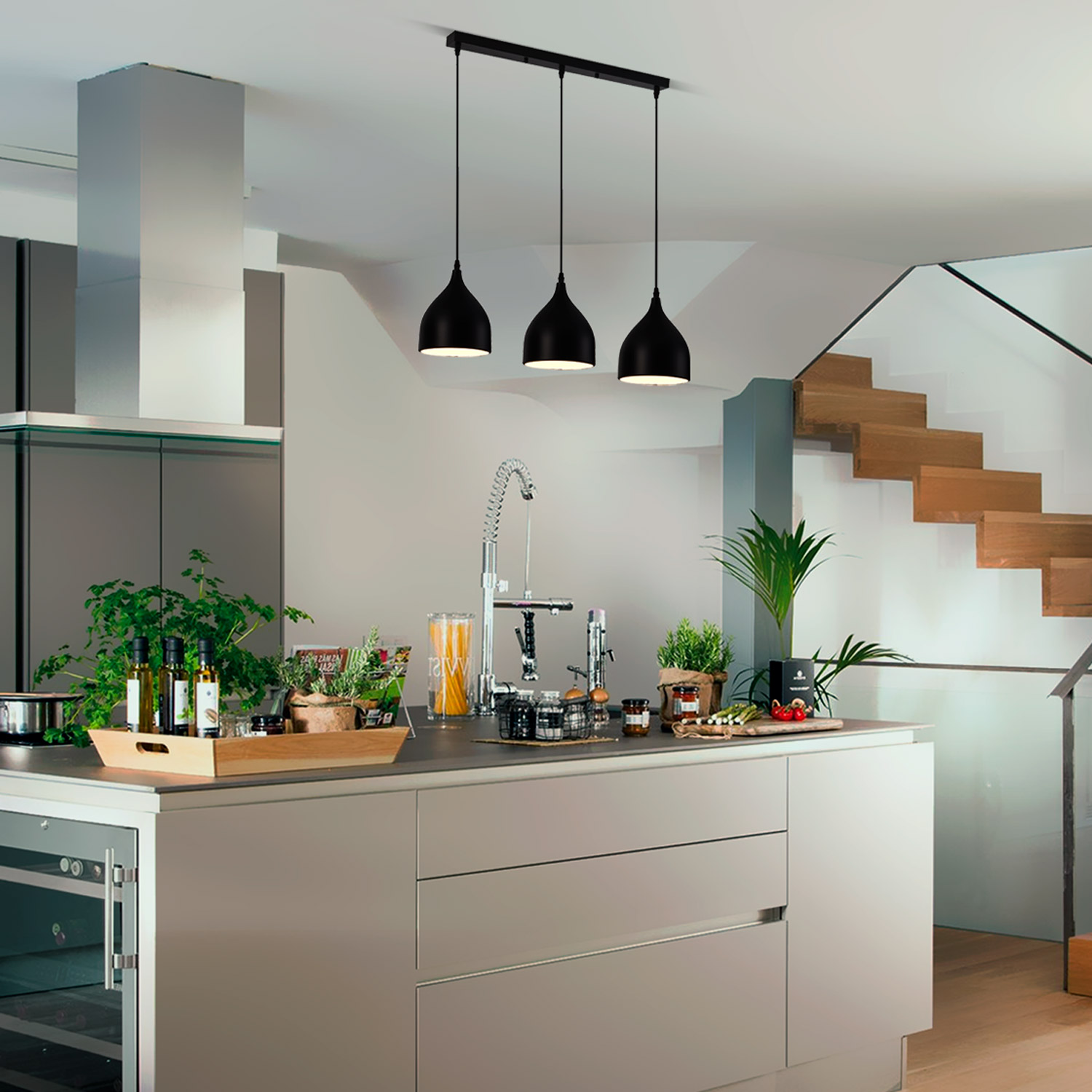 Lampara colgante E27 RINO  por 3 bombillos Máx. 40W para suspender color negro. Uso para interiores. Diseño moderno, ligero y práctico, de fácil instalación y limpieza. No incluye foco o bombillo.