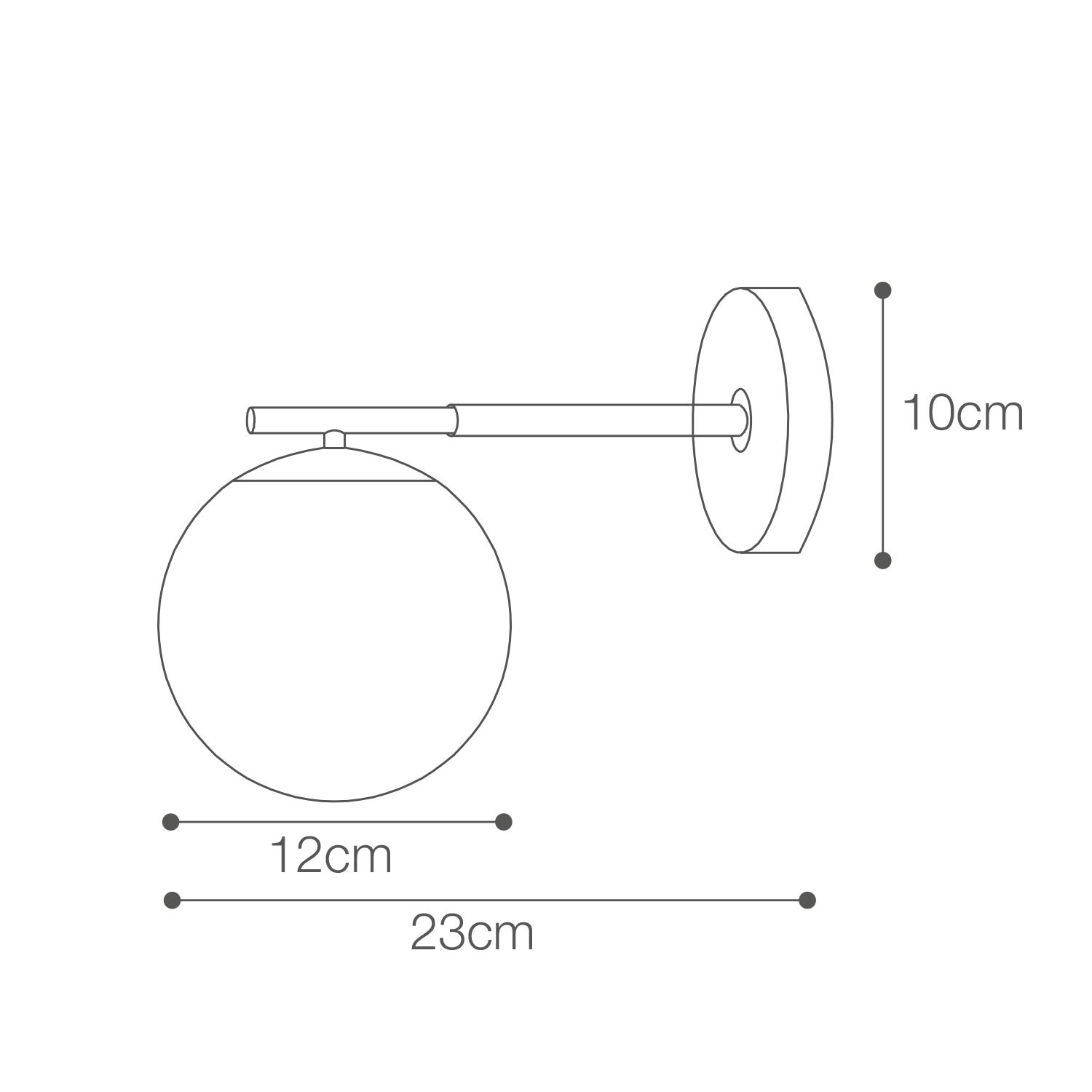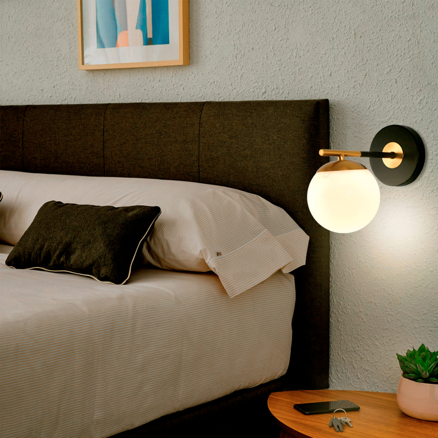 Aplique de pared E27 ROMI Máx. 40W para adosar en pared color negro con esfera blanca.