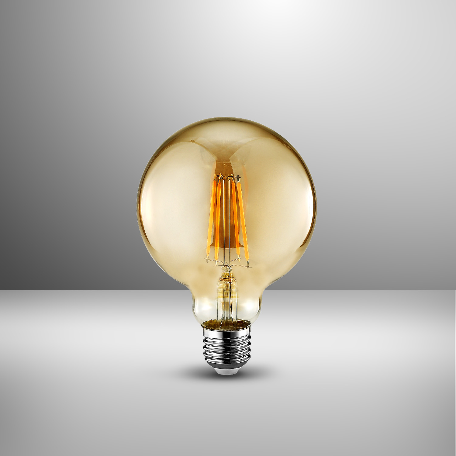 Foco G95 LED DE FILAMENTO 7W de alto rendimiento, brinda un gran desempeño. De color ámbar.