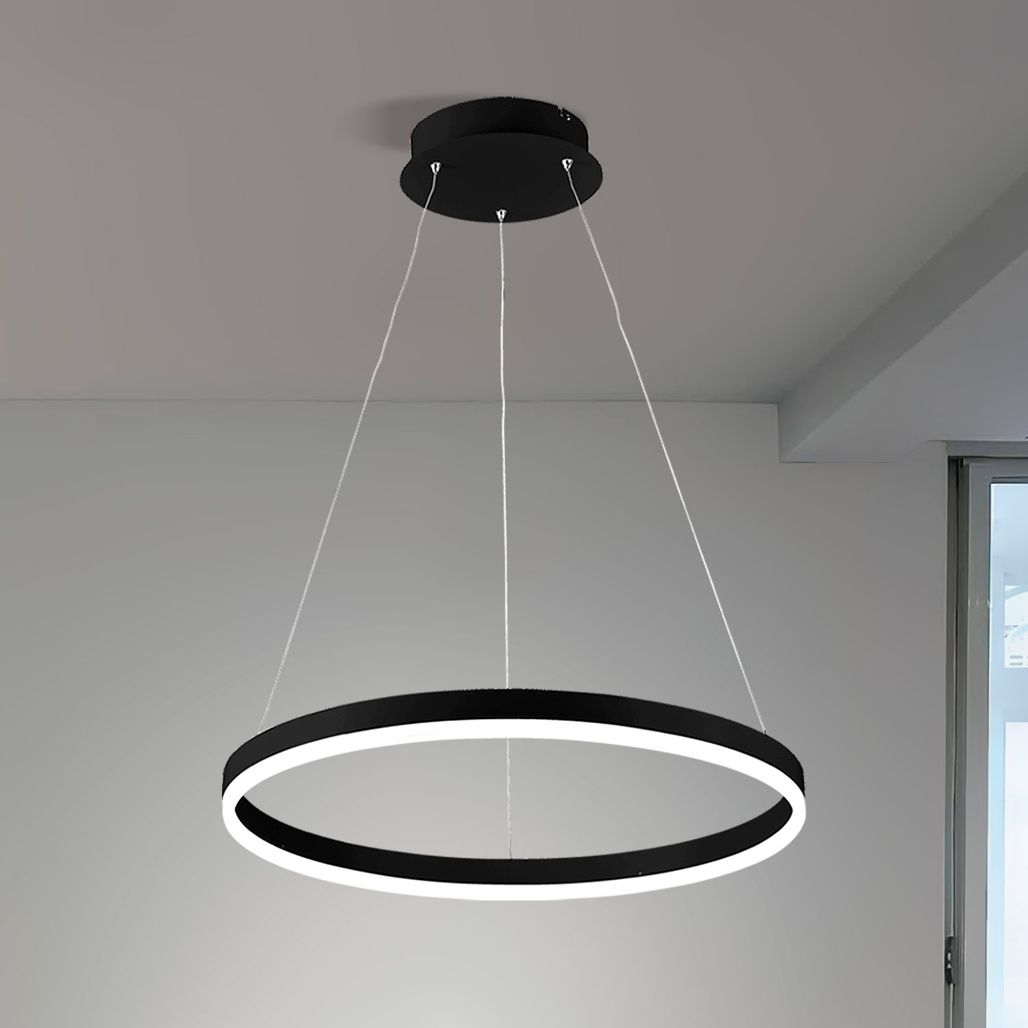 Lampara colgante LED ORBITA 30W para suspender. Uso para interiores. Diseño sobrio y elegante. Altura regulable hasta 120cm, canopla con diámetro 150X35mm.