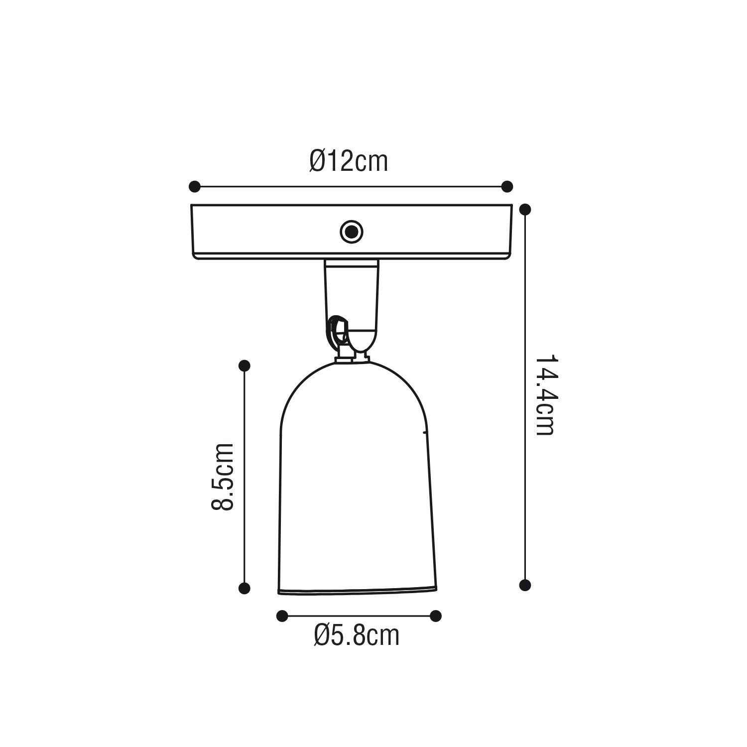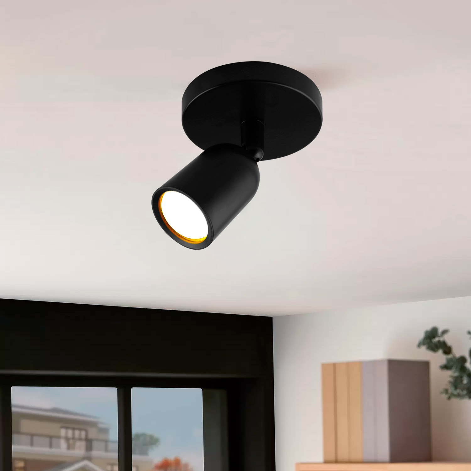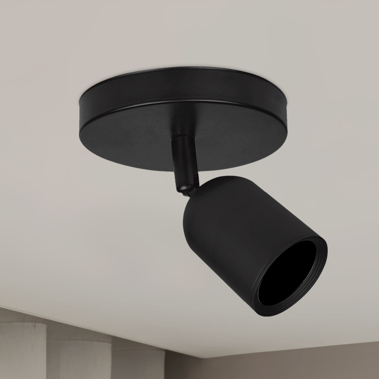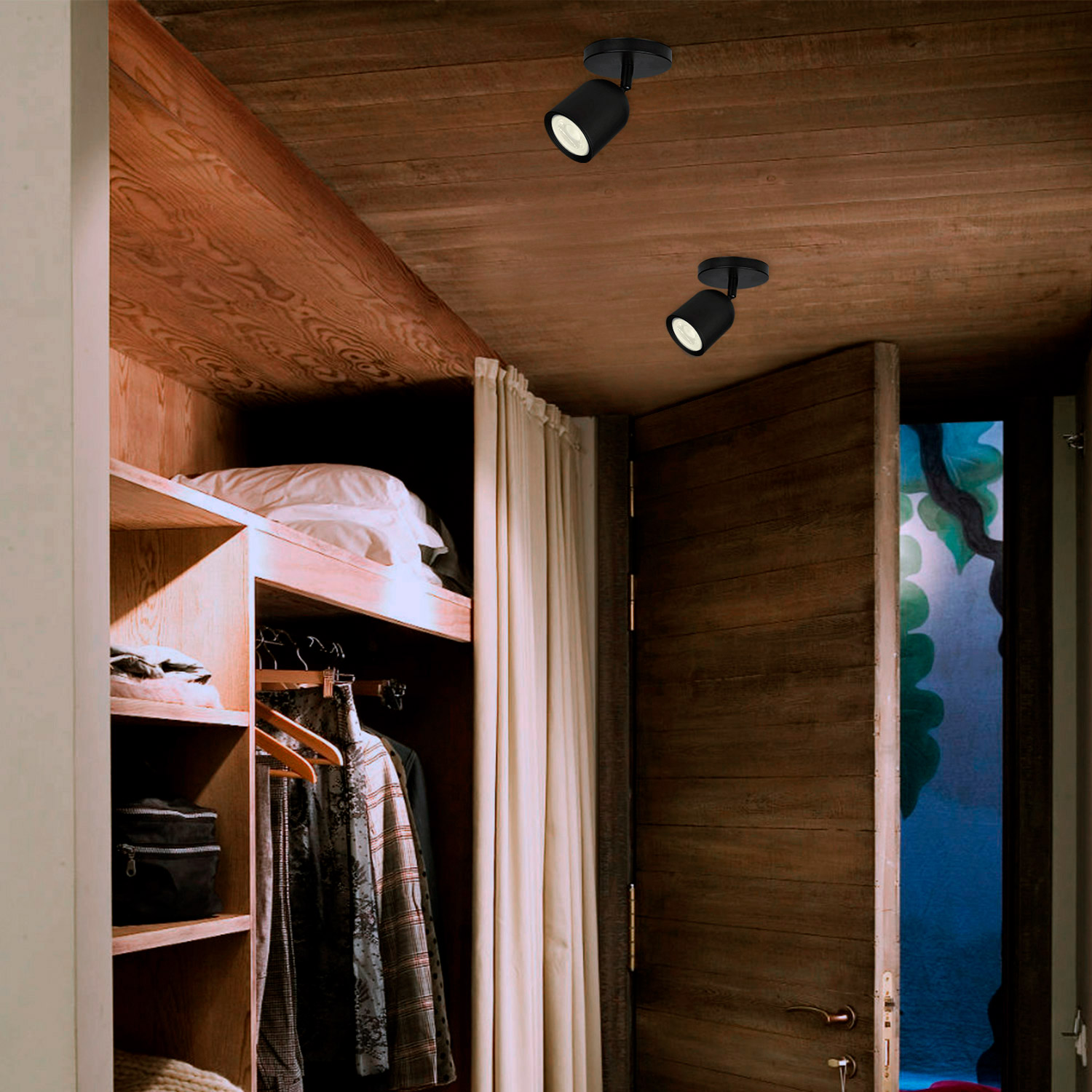 Spot con socket GU10 para adosar en techo; cuenta con cuerpo dirigible para orientar la luz en el espacio. Uso para interiores.