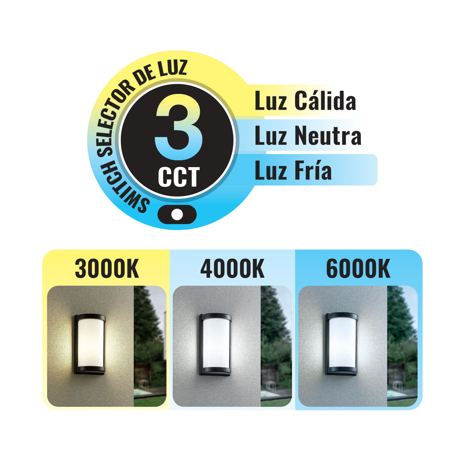 Aplique LED 30W IP65 Negro – 3 Tonos de luz cálida/ neutra/ fría