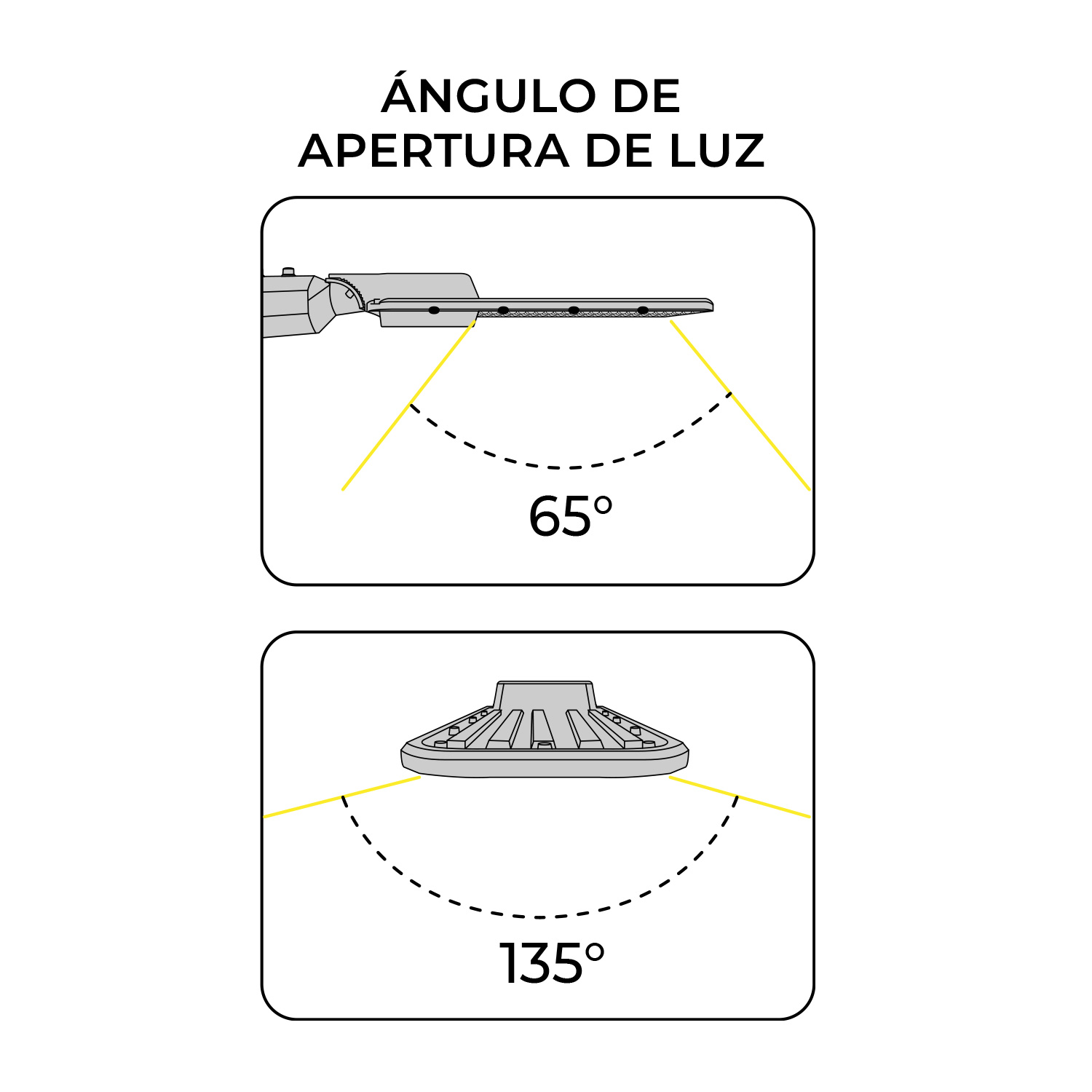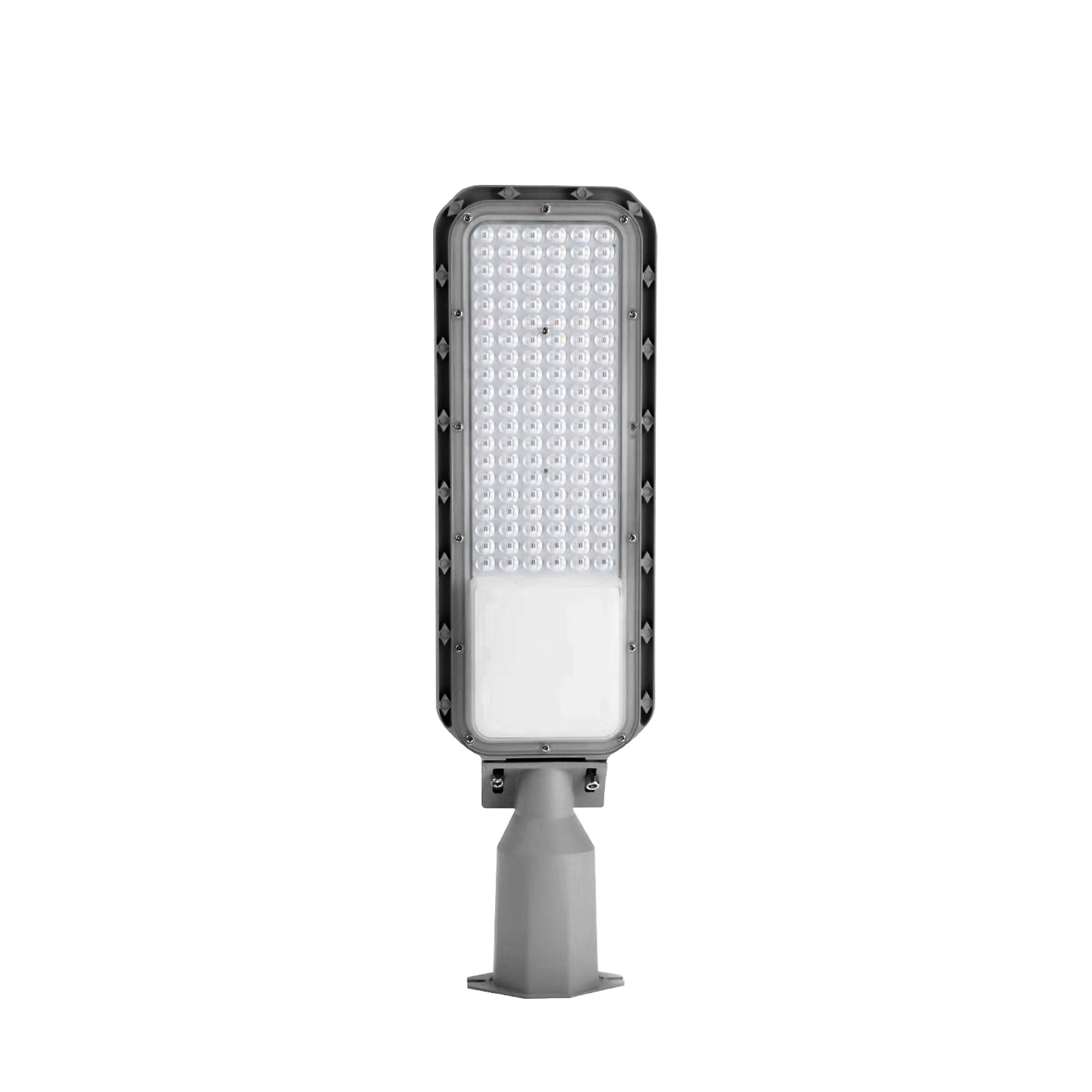 Luminaria urbana LED de 100W para aplicaciones de alumbrado público. Cuerpo de aluminio pintado en color gris. Diseño estético ideal en entornos urbanos y suburbanos.