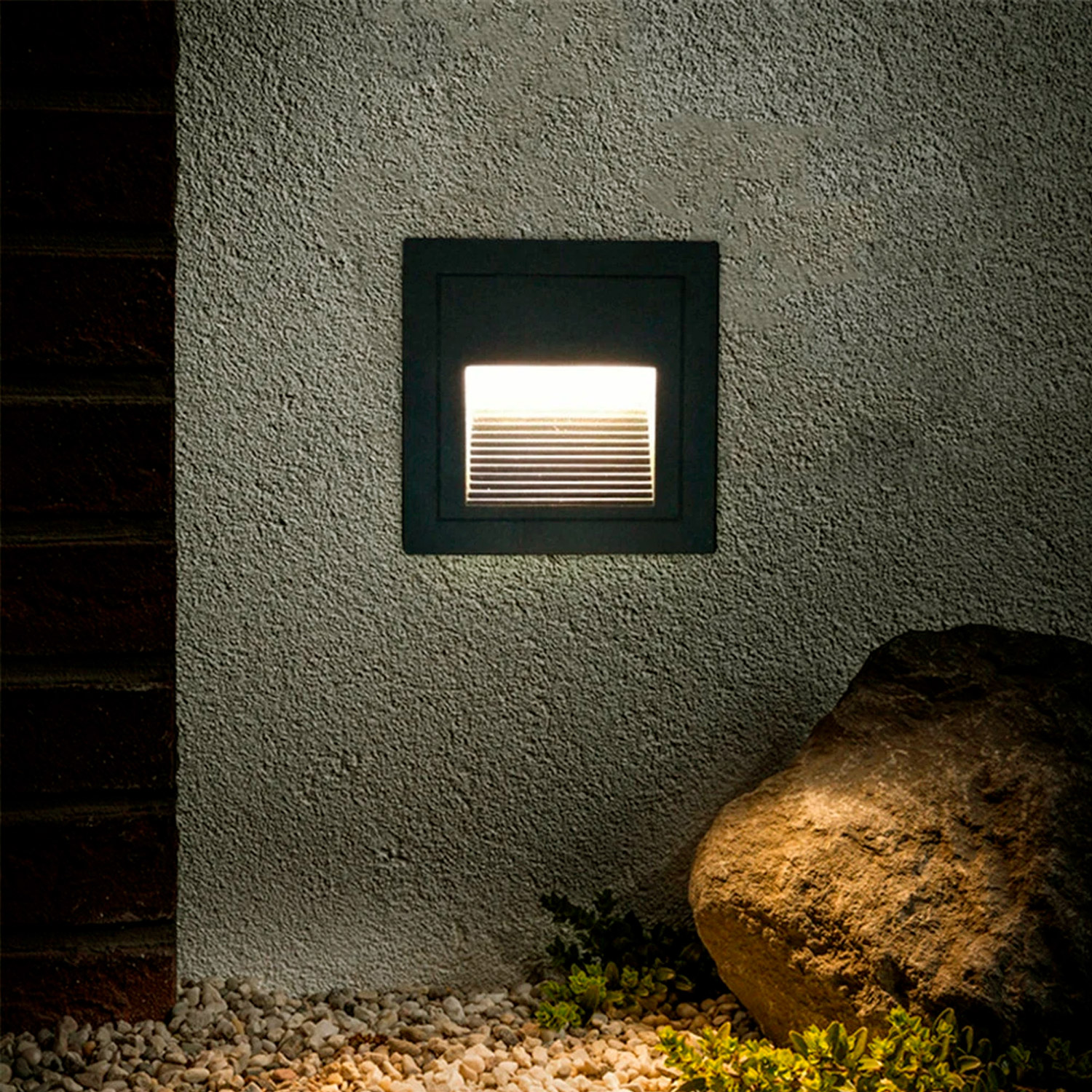 Luz Guía cuadrada LED 3W para empotrar IP54 Negro – Luz cálida 147358