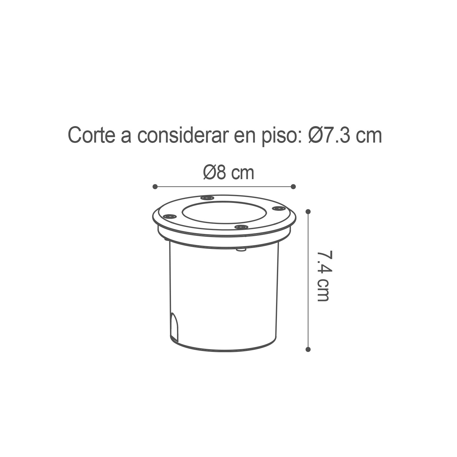 Spot de piso LED 5W, con índice de protección IP67 . Tiene las características: Larga duración, alta eficiencia en iluminación, encendido instantáneo, ahorra energía y es fácil de instalar. Una de las ventajas es su larga duración, teniendo como mínimo de 30,000 horas de vida útil.