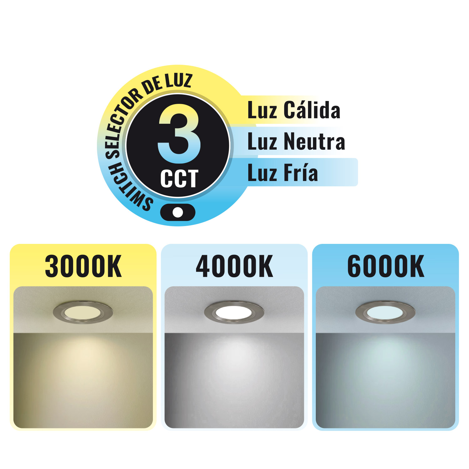 Spot empotrado LED para caja octogonal de 14W. 3 Temperaturas de luz (3CCT)- 3000K, 4000K O 6000K. 1120M color blanco – 185-245v/50-60HZ