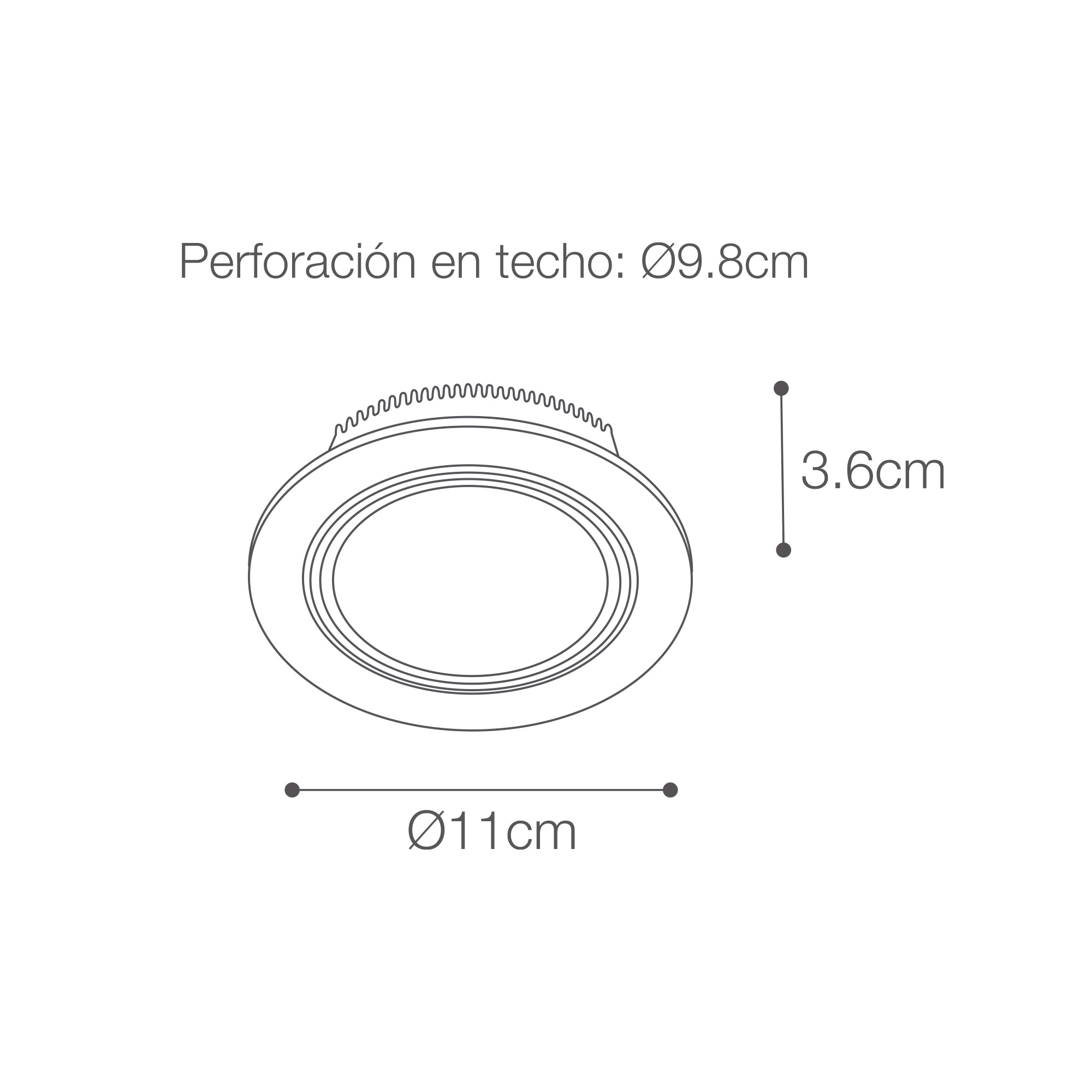 Spot EMP LED para caja octagonal, 9W, Siwtch para selector de tono de luz (3000K, 4000K o 6000K) 720 LM, plástico, Color silver. Rango de voltaje: 185-245V, 50-60Hz.